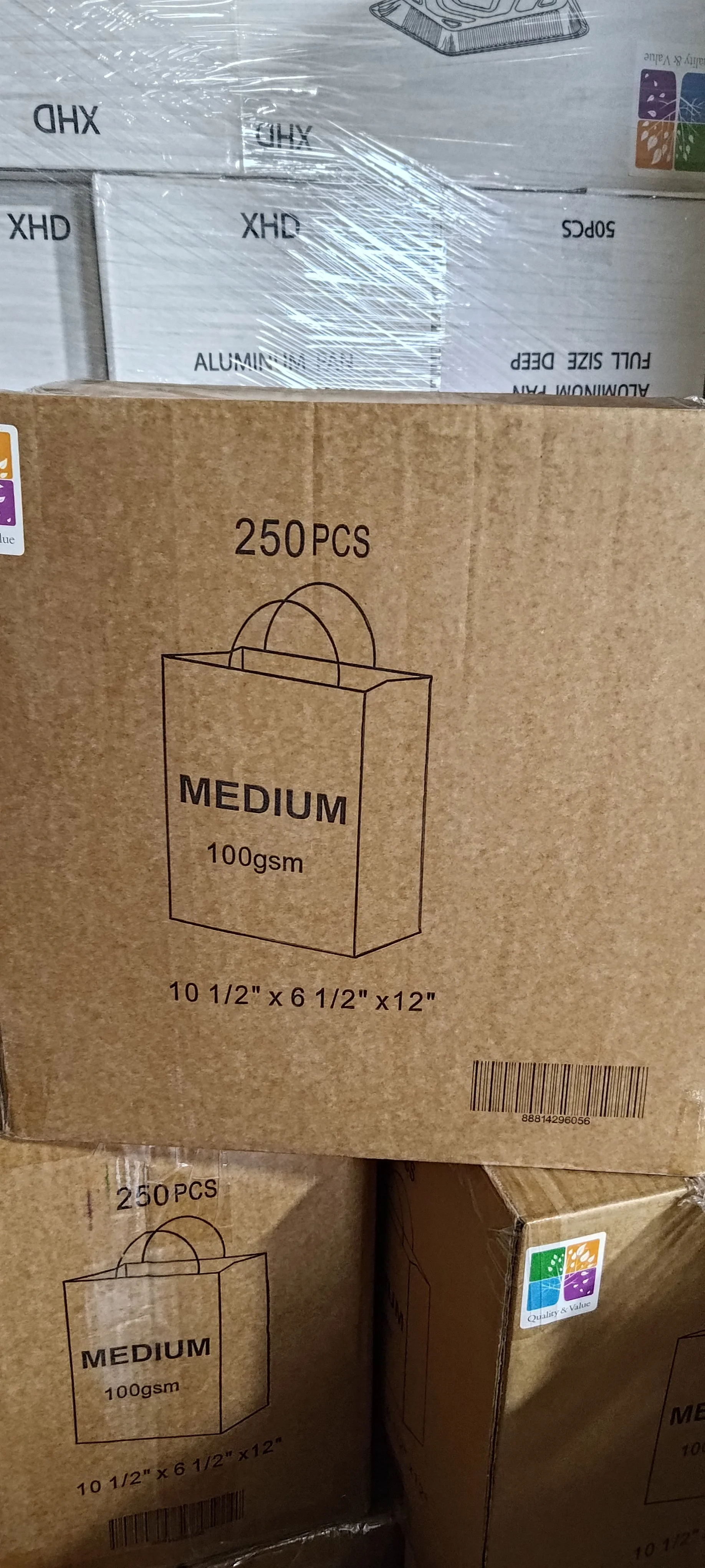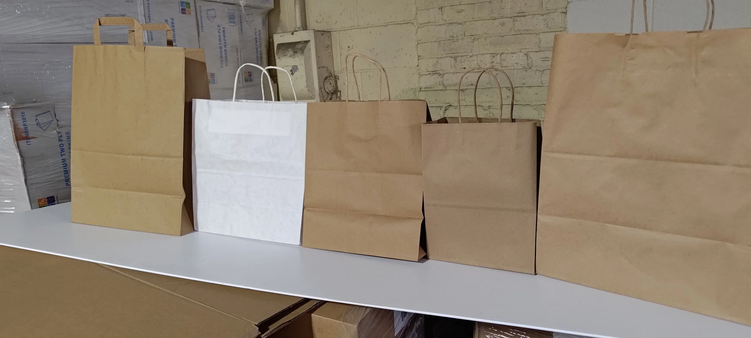 Shop Restaurant supplies › Brown Paper bags with handles Image 1 of 10 Image 2 of 10 Image 3 of 10 Image 4 of 10 Image 5 of 10 Image 6 of 10 Image 7 of 10 Image 8 of 10 Image 9 of 10 Image 10 of 10 Brown Paper bags with handles from $40.00 All of them come with 250 pieces in a case except for 14 X 10 X 16 comes with 200 pieces Size: Select Size 8x4x10 11x7x13 13x7x17 14x10x16 Add To Cart Added! All of them come with 250 pieces in a case except for 14 X 10 X 16 comes with 200 pieces